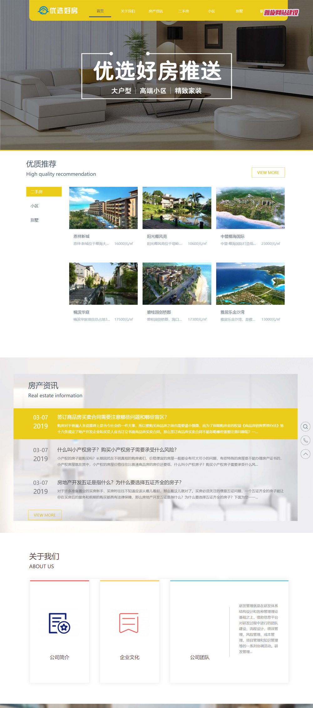 雅旋科技为优选好房提供整体的官网建设服务