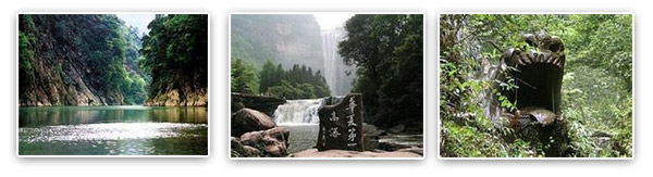 四面山,景区景观以原始森林为基调,众多溪流、湖泊、瀑布点染于苍山绿树之,丹霞地貌丰富其自然色彩,目不暇接的动、植物更为景区增添盎然生机。 四面山的瀑布最为壮观。有大小瀑布100多处。瀑布倾泻激荡,掀起满天烟雾,轰然鸣响,数里之外也能感受到其威势。望乡台瀑布高152米,宽40米,居我国高瀑之首;水口寺瀑布高94米,悬挂在一个天然洞穴之下,景象奇特;鸳鸯瀑布比翼齐飞,撩人遐思。 风景区内的洪海湖,湖水晶莹清澈,静如明镜,蜿蜒逶迤于深山峡谷、莽莽森林之中。荡舟湖上,心旷神怡。面山原始绿阔叶林带在同纬度中保存较好,有植物1500多种,珍稀濒危植物19种,其中刺桫椤是3.5亿年前的史前残遗植物。动物207种,其中属国家级重点保护动物16种,省级保护动物8种,为我国“物种基因的宝库”。